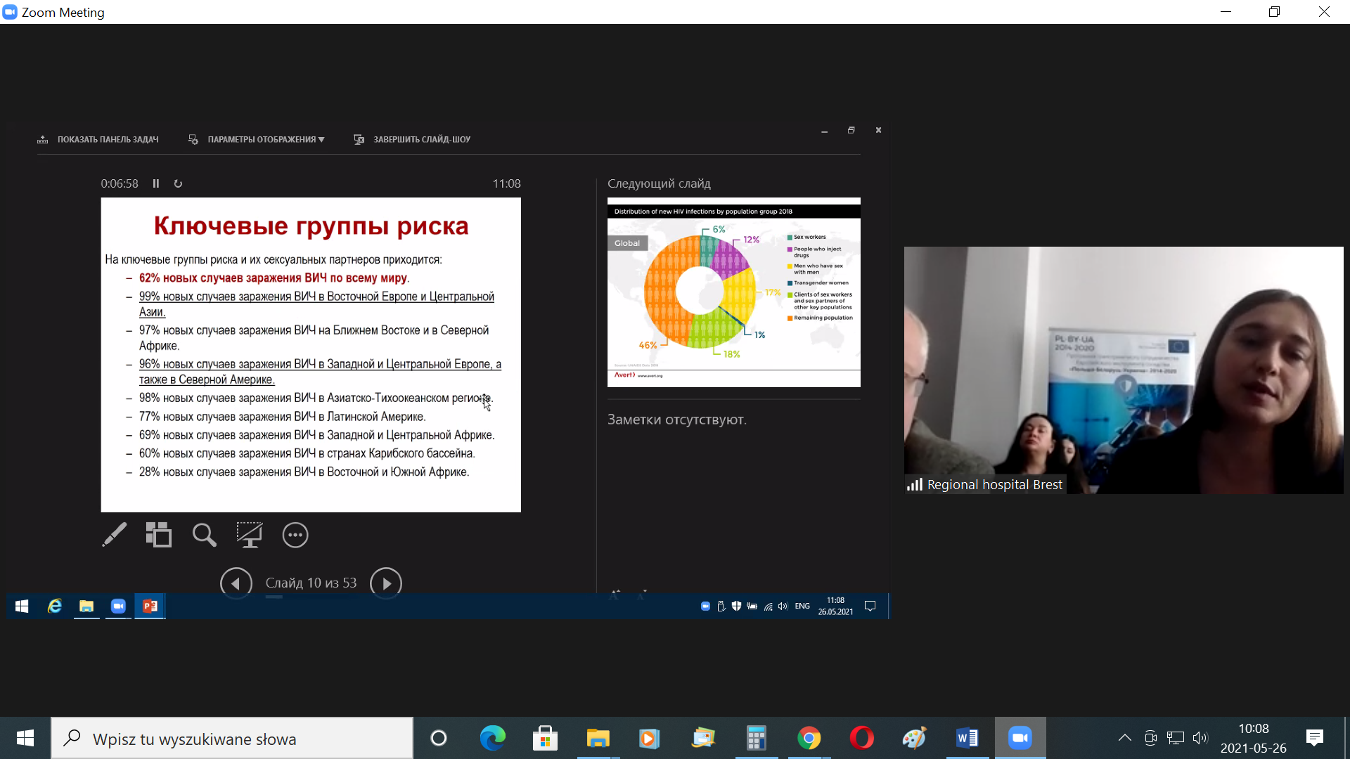 Na świecie żyje 38 mln osób z HIV/AIDS, w 2019 r. zakażenie HIV rozpoznano u 1,7 mln osób, 690 tys. osób zmarło z powodu chorób związanych z AIDS. W Polsce do końca 2020 r. stwierdzono około 26,5 tys. zakażonych ogółem, ok. 3,8 tys. pacjentów zachorowało na AIDS, ok. 1,1 tys. chorych zmarło. Na Białorusi do 2020 r. zdiagnozowano ok. 28 tys. zakażeń, blisko 3,5 tys. osób miało AIDS, a ok. 1,4 tys. osób zmarło.